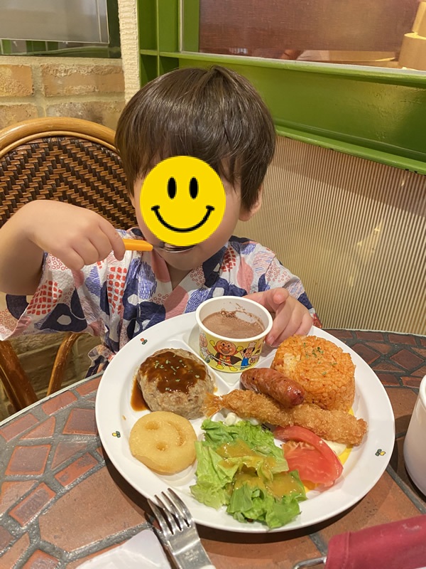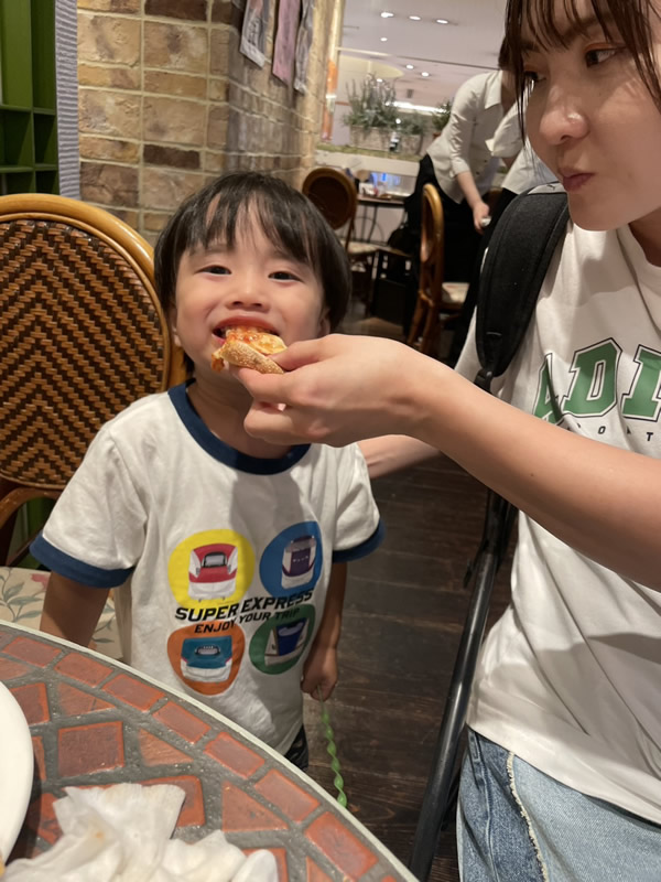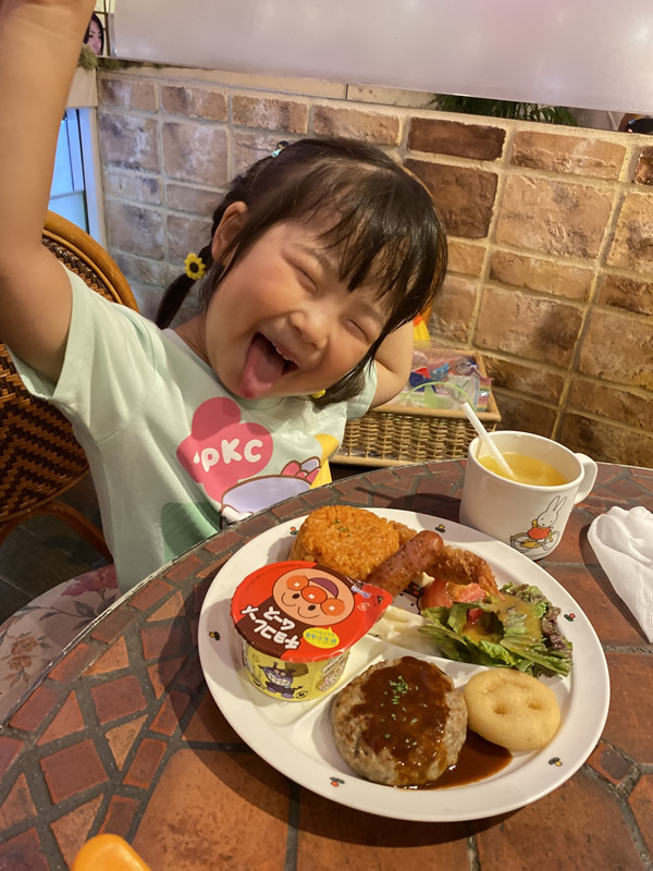 いっぱい歩いて疲れている中、自分で選んだ昼食の笑顔・・・最高です。