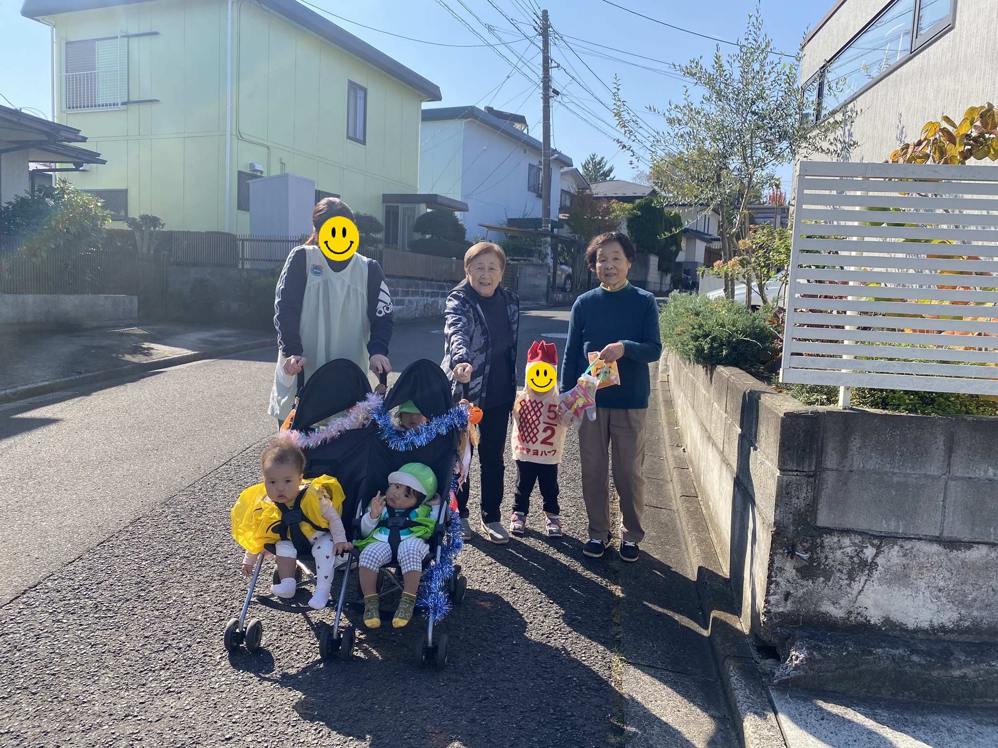 今年のはっぱのハロウィンは、2日にわたって地域の方たちのところに訪問させていただきました。